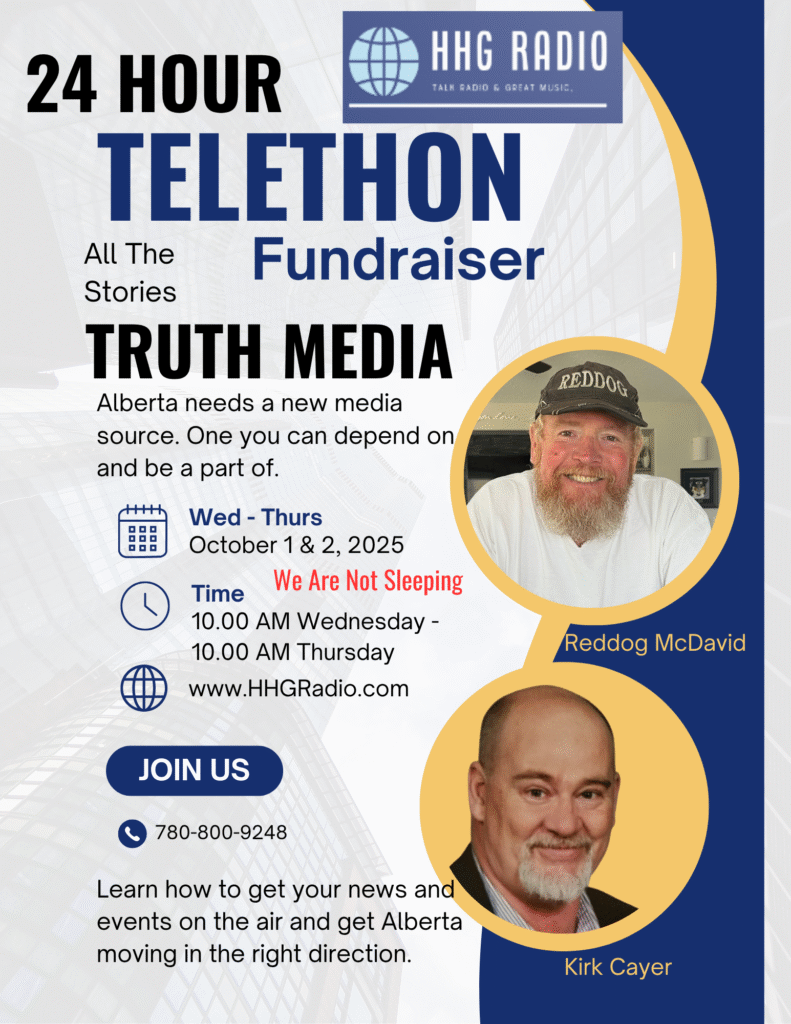 At HHGRadio.com, we believe Albertans deserve more than filtered headlines and political spin. We are an independent internet radio station committed to truth-based journalism, open dialogue, and fearless storytelling.